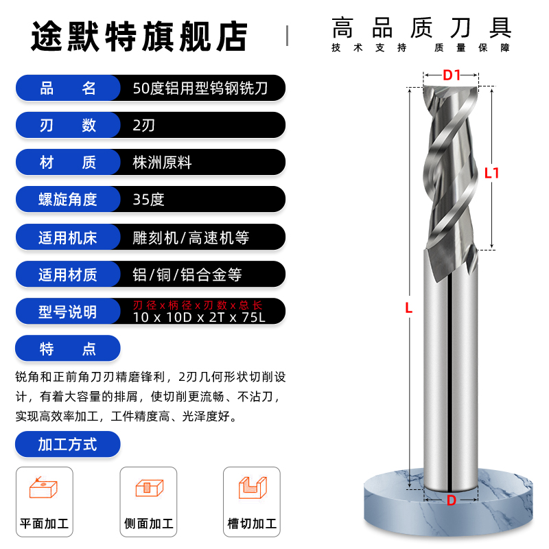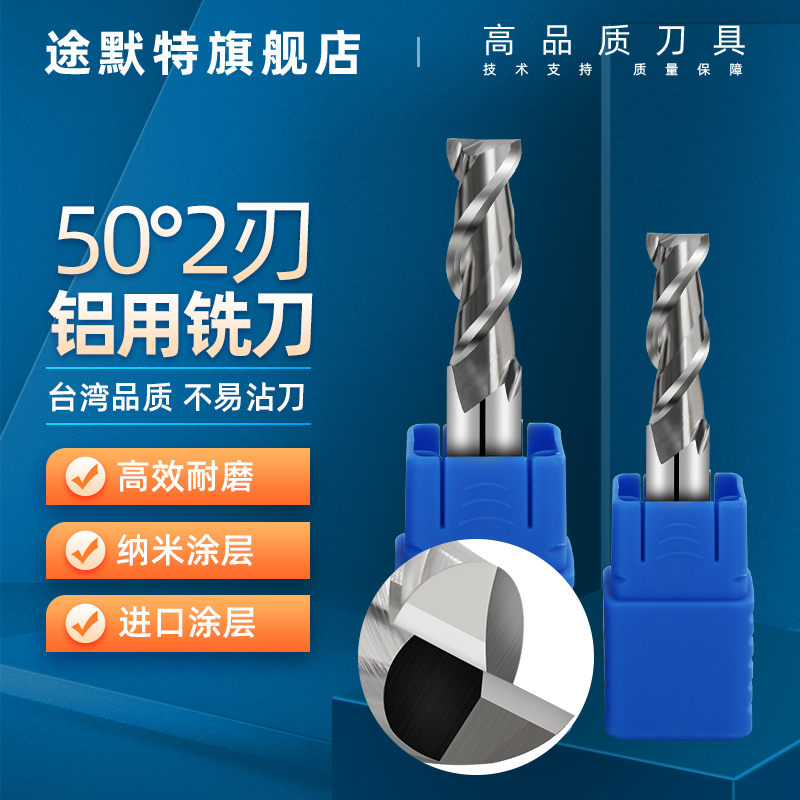 Tumote aluminum milling cutter key slot knife 2-blade tungsten steel milling cutter aluminum carving knife to open coarse alloy woodworking plastic knife