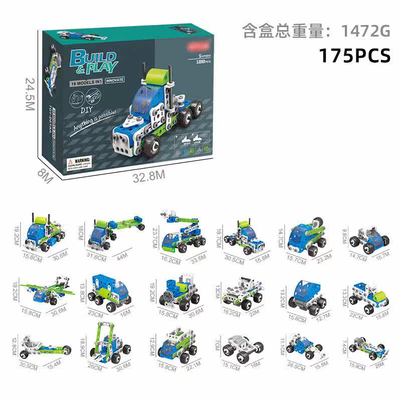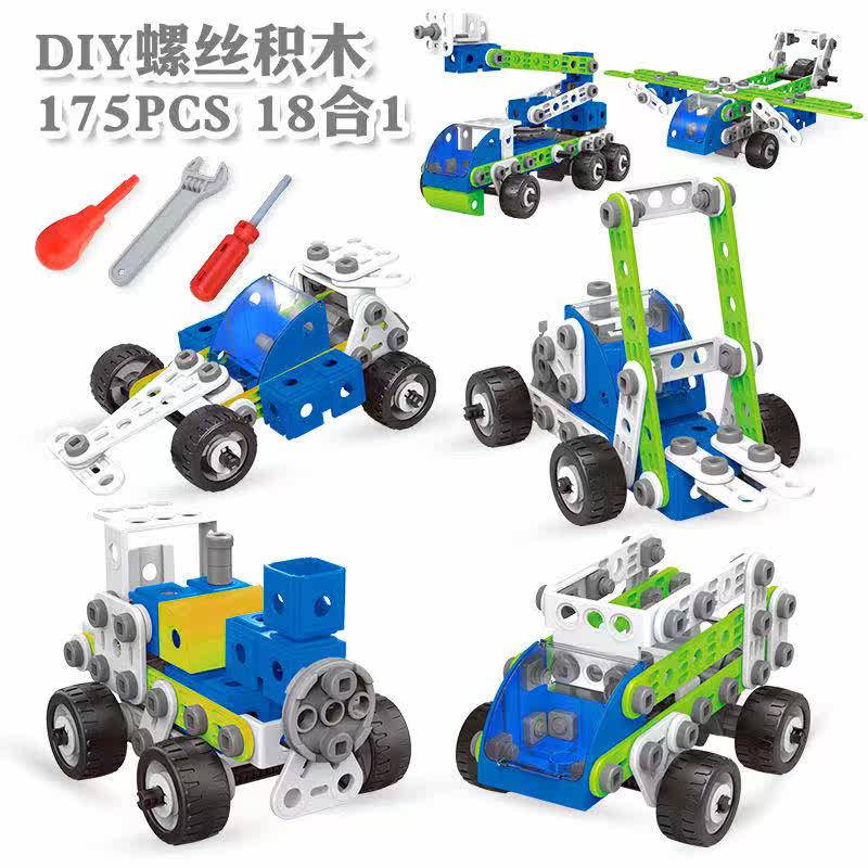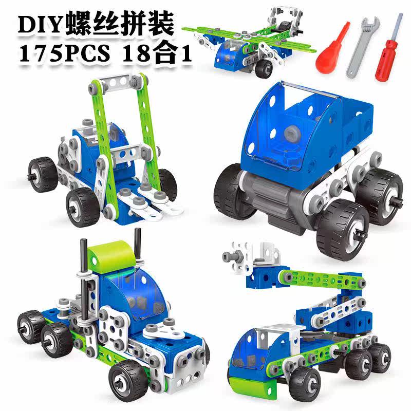 18 in 1 soft glue building blocks assembled pullback engineering vehicle 7 model set primary school students science and education storage 8 toys puzzle