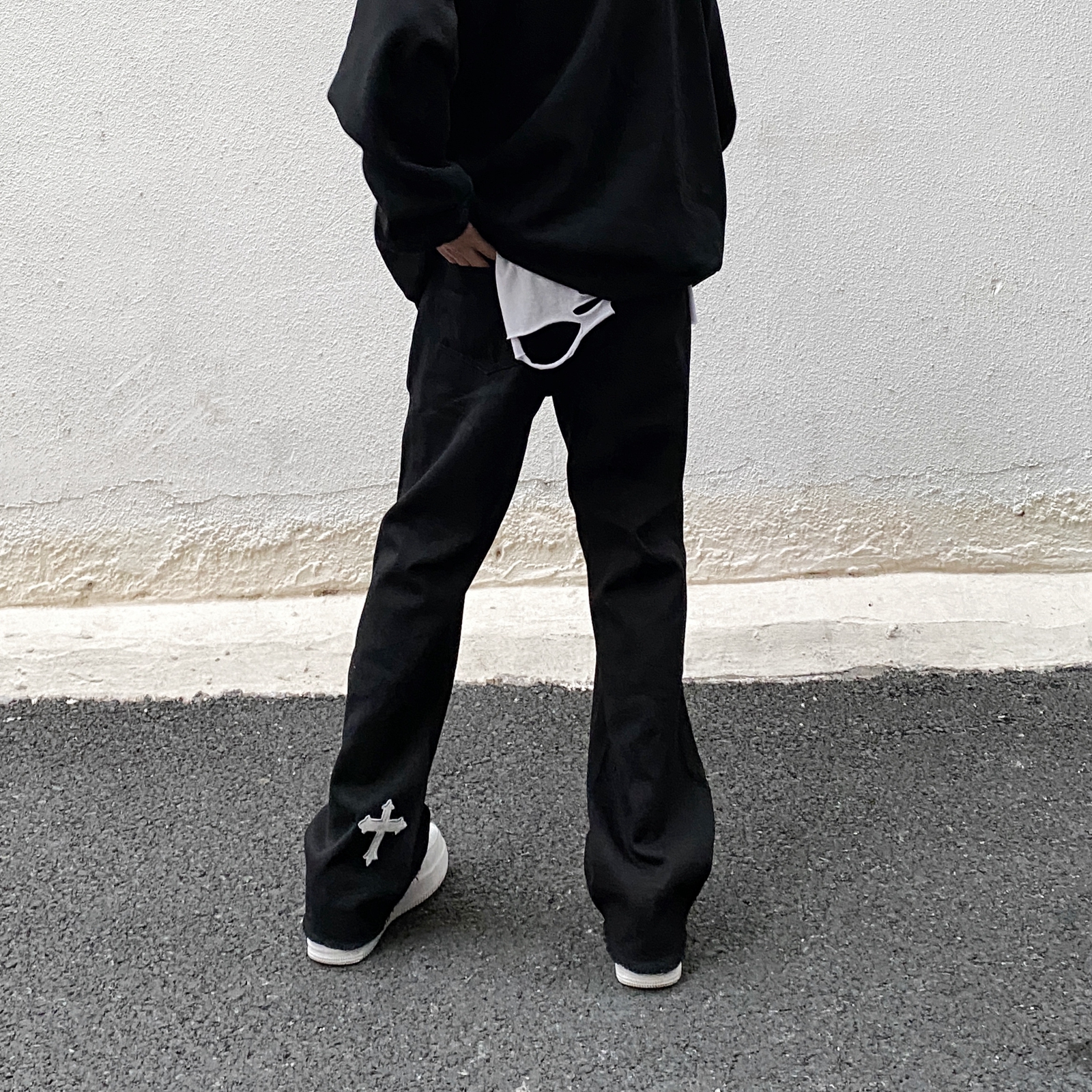 Non-tide near high street American vibe wind micro-lamb cross loose jeans tide hip hop fried street pants man
