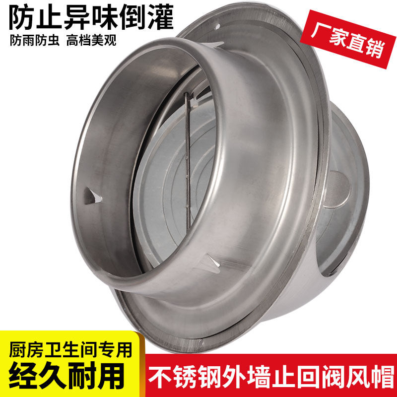 Stainless steel exterior wall hood check valve windproof cover smoke machine exhaust pipe air outlet outdoor rain-proof spherical hood