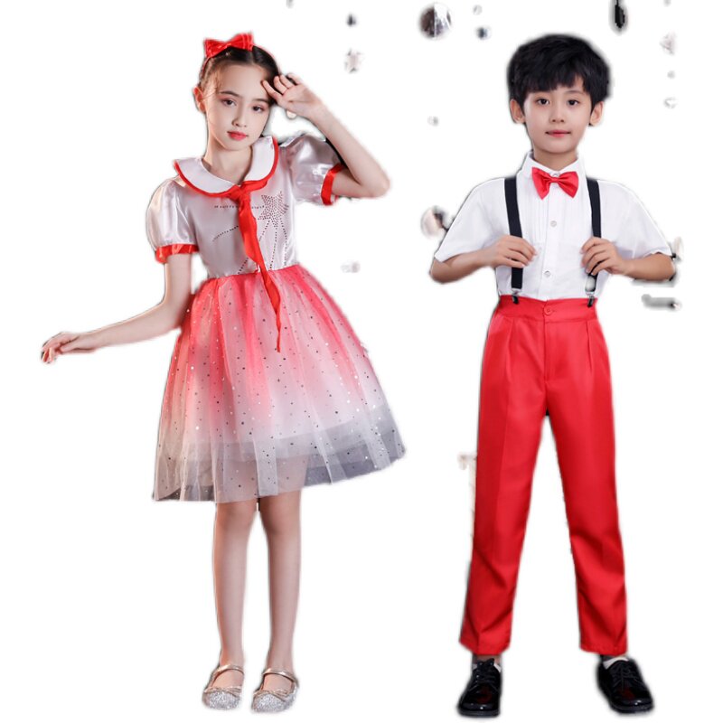 New Year's Day Children Choir Show Boys and Girls Collection School Poetry Recite Singing Motherland Performance Clothes