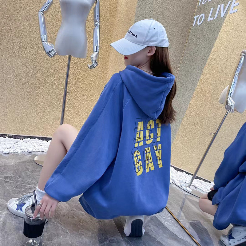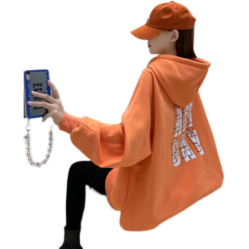 Autumn Winter Gestation Woman Dress New Korean Version Plus Suede Cap Letter Printed Astronaut Loose Thick Coat 6812