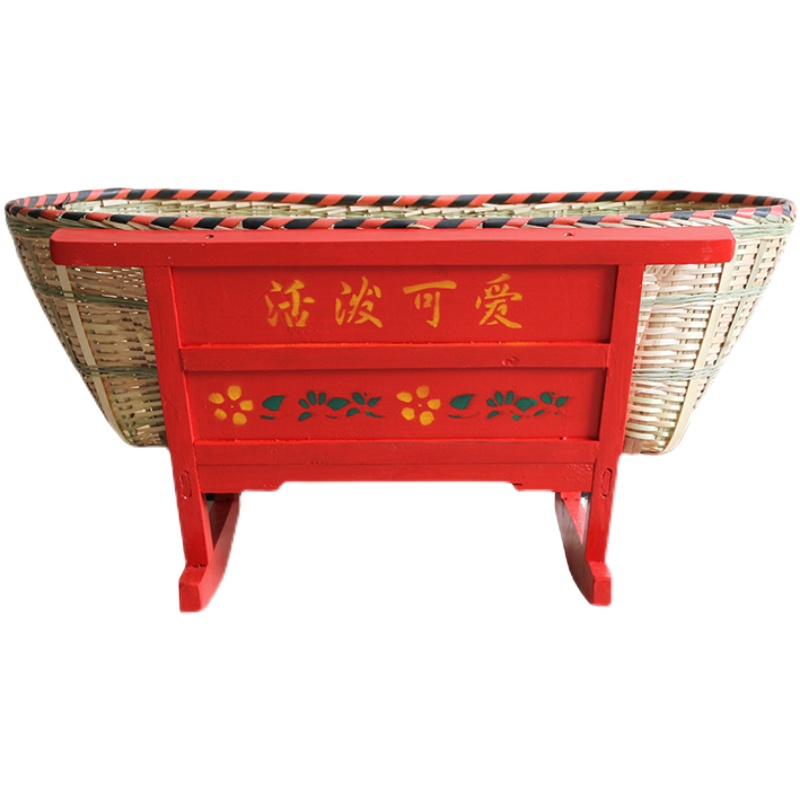Old-fashioned rocking nest solid wood paintless bb newborn crib to sleep and soothe the baby's traditional bamboo cradle bed