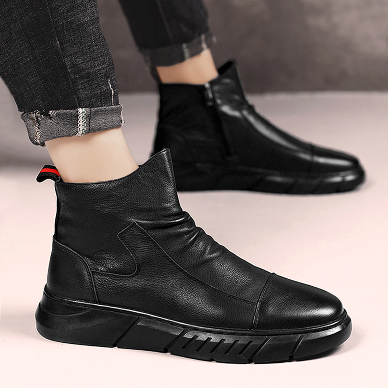 Black Waterproof Shoes Men's Anti-Slip Kitchen Sports Casual High Cylinder Leather Shoes Gvet Warm Cotton Shoes Lao Boys Shoes Winter