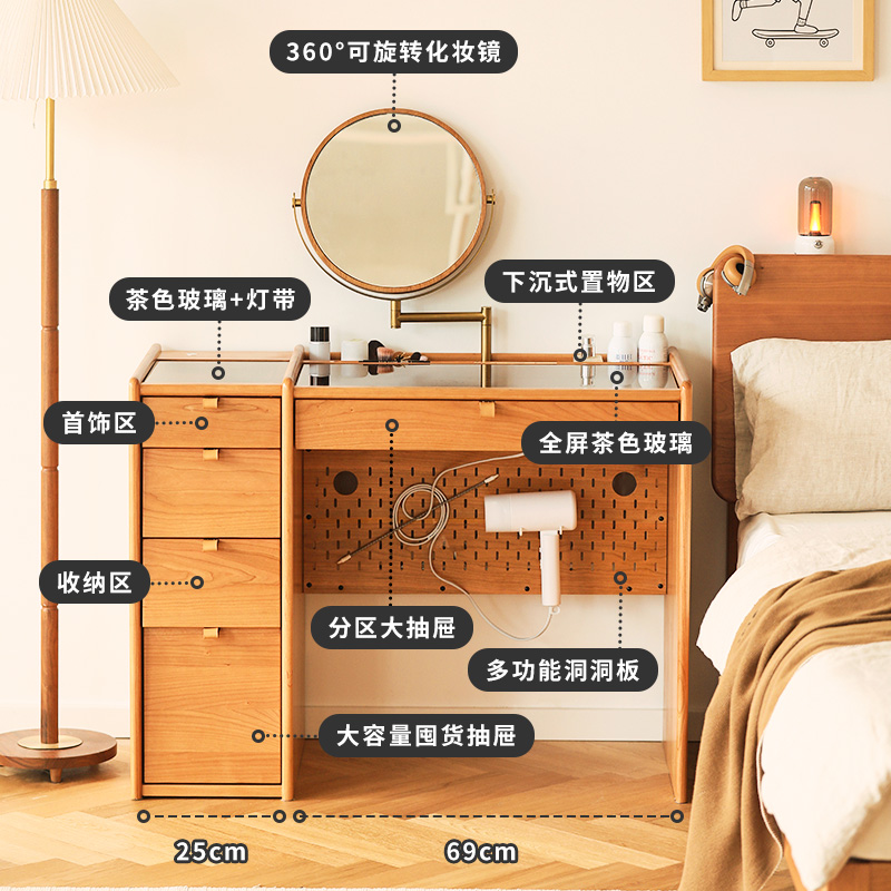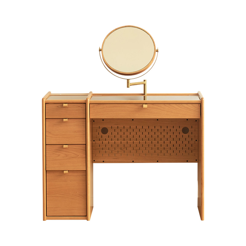 North Stranger Furniture Makeup Bench Solid Wood Nordic Minima Small Bedroom Day Style Cherry Wood Makeup Table Containing Cabinet