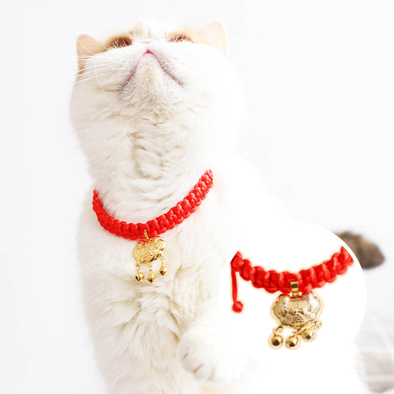 Kitty Neckline Cat Bell Ringer New Year Decoration Necklace Small Cat Long Life Lock Woven Neck Ring Dog Pet Neck Ornaments