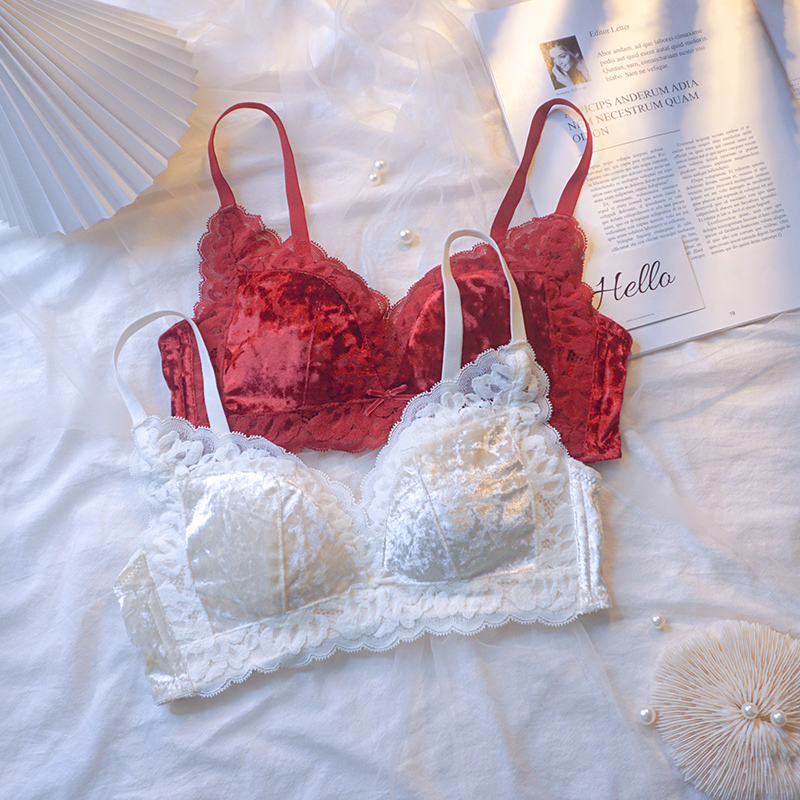 Red lingerie suit Benlife New Year small breasts Breast Poly-breasted Marriage Tiger No Steel Ring Velvet Bra New