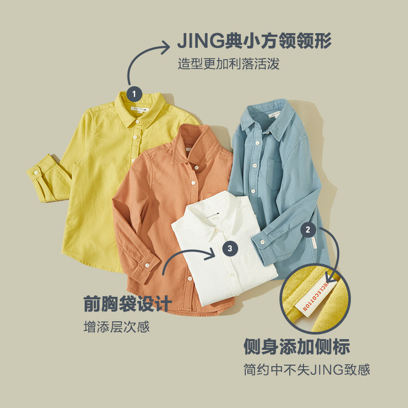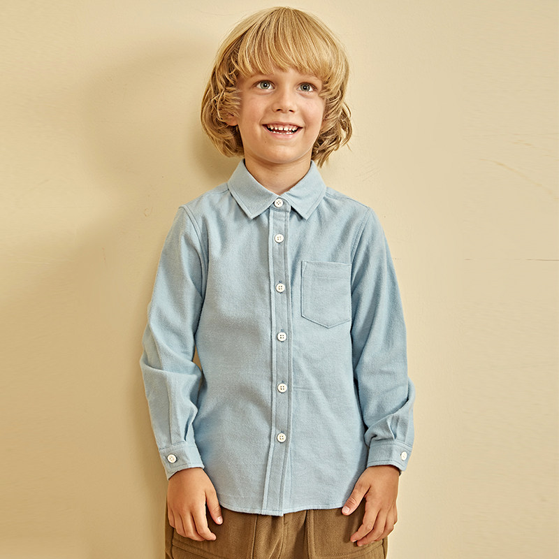 (Grinding thick) cotton uncle Children's pure color shirt casual foreign pie shirt male and female child spring and autumn pure cotton blouse