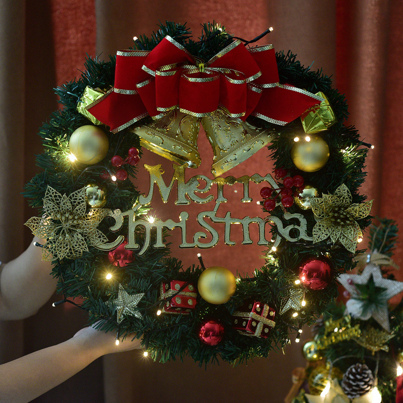 Gold and red Christmas decorations Christmas wreath door hanging ornaments gift rattan home Christmas tree circle scene layout