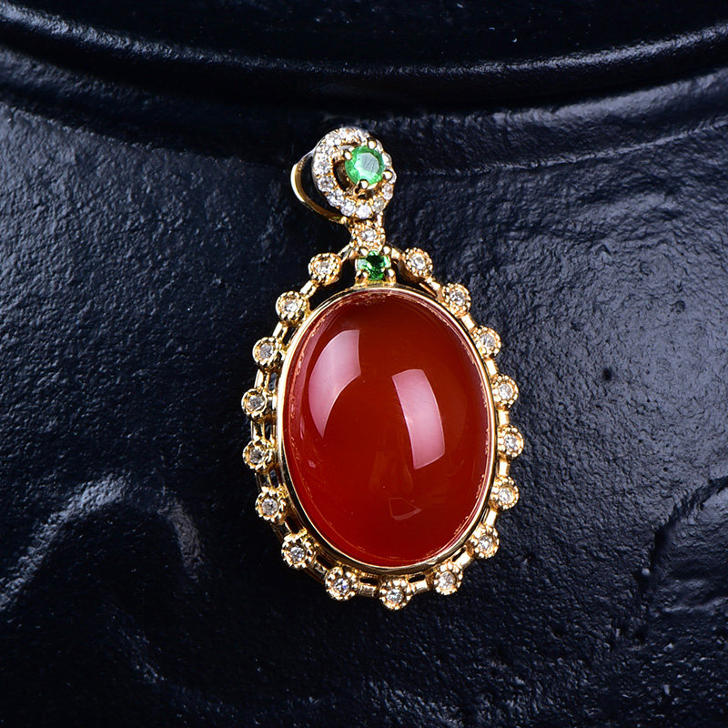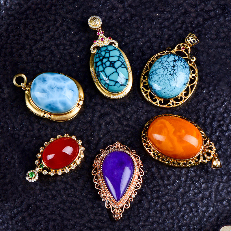 Zhengya Jewelry Natural Honey Wax Amber South Red Pine Stone Pendant Ring Earrings 18k Gold Inlaid High End Custom