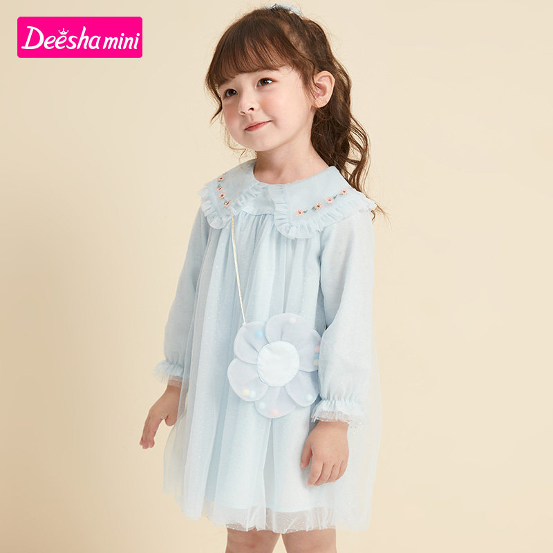 Flute Girls Dress Girl Ocean Dress 2022 Spring New Children Women's Baby Foreign Pie Sweet Mesh Princess Dress