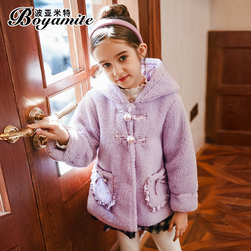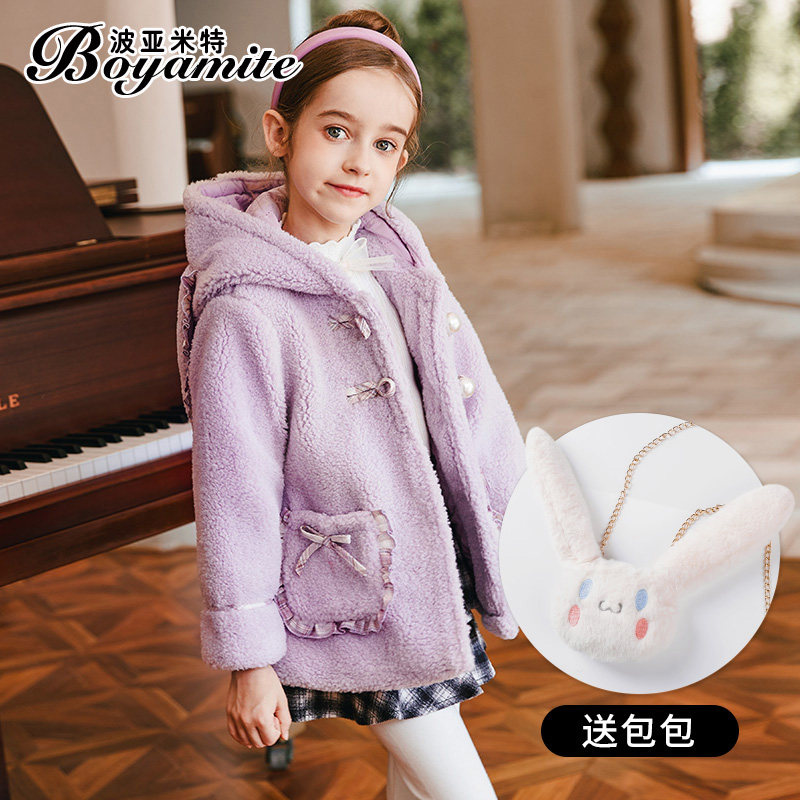 Girl lamb wool even cap jacket winter clothing 2021 new children's foreign pie mid-edition baby autumn winter thickened large coat