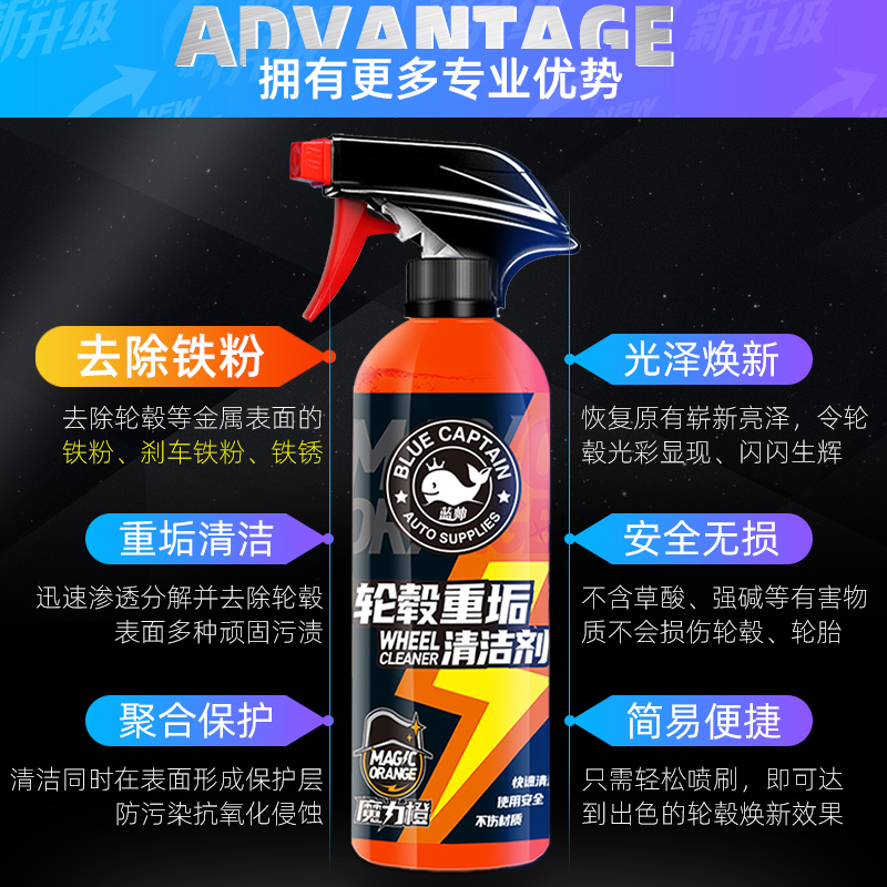 Car hub cleaning agent for aluminum alloy removal of embroidered iron powder steel ring powerful decontamination car wash liquid cleaning deity