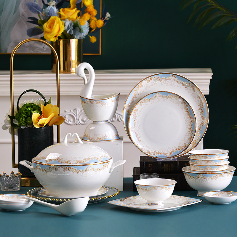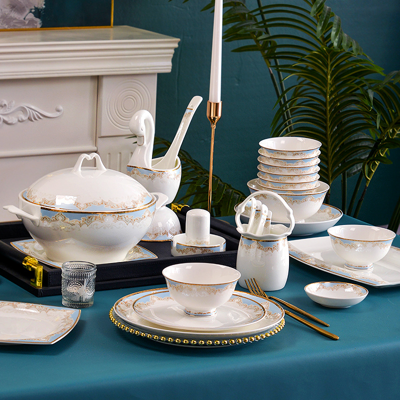 National Yue Tangshan Bone Porcelain Bowl DISH SUIT HOME CUTLERY SETS GROUP BOWLS PAN NORDIC MODERN MINIMALIST LIGHT AND LUXURIOUS BOX CLOTHING