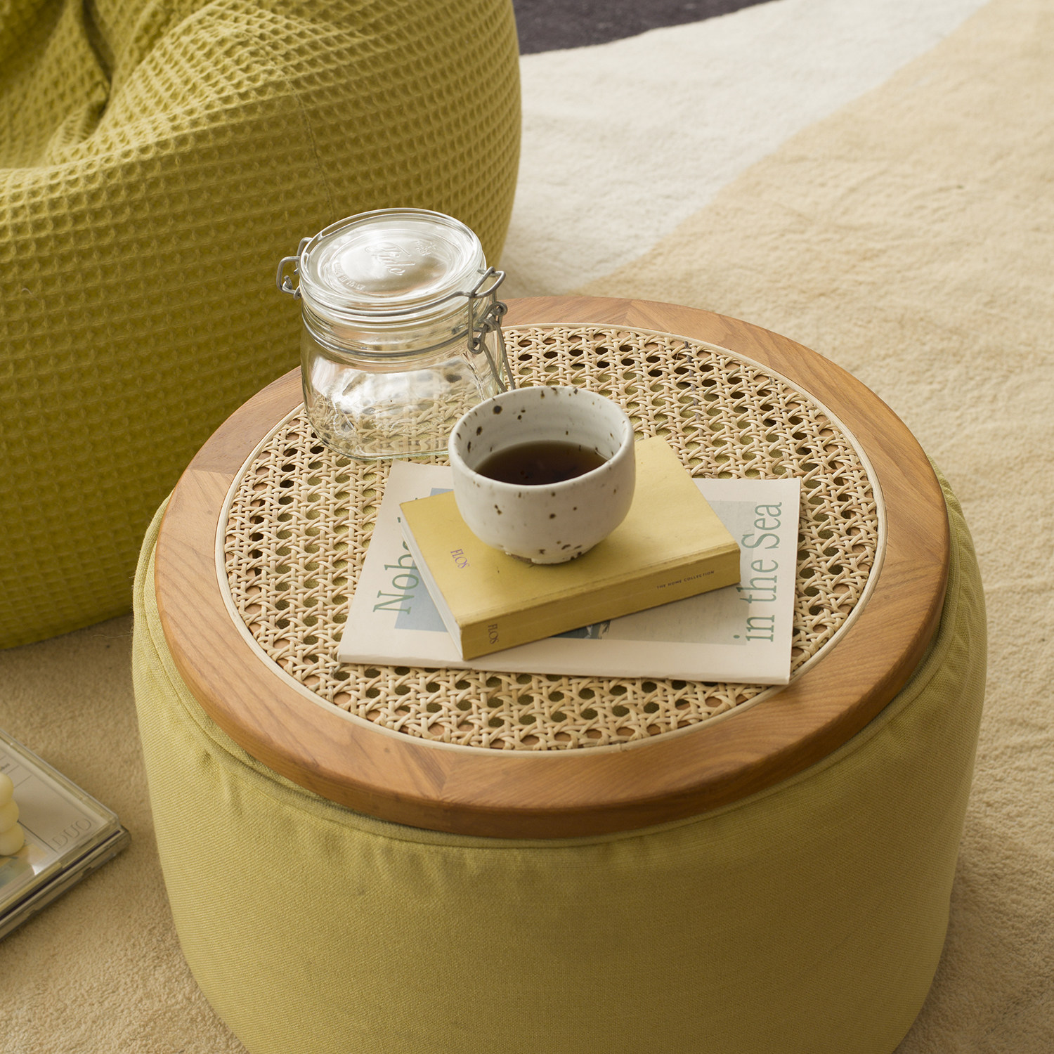 MRLAZY Wooden Tea Tray Rattan Household Round Storage Mobile Tray Ornament Floor Shelf Light Luxury Delicacy