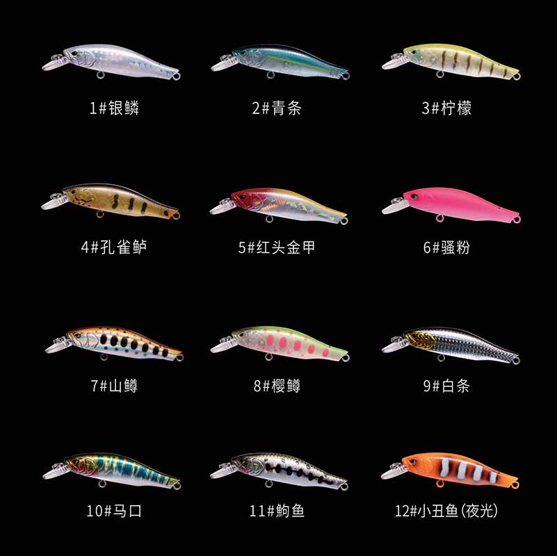 1 # silver scales 3 5 gr 50mm2 # of green strips 3 5 gr 50mm3 # lemon 3 5 gr 50mm4 # Peacock bass 3