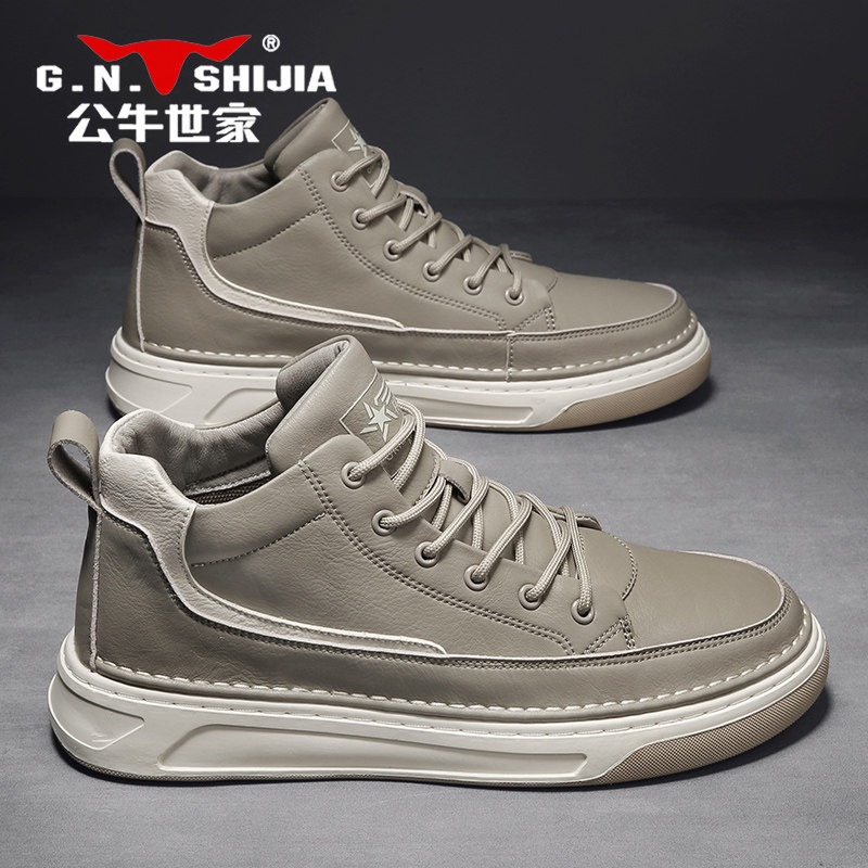 Bull World House Men's Shoes Autumn Winter Style High Cylinder Board Shoes Two Cotton Shoes Men Winter Warm Plus Suede Casual Leather Shoes Wave Shoes
