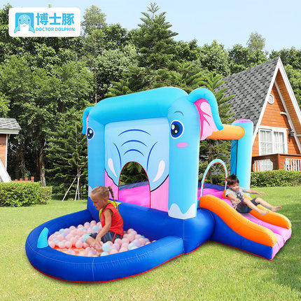 Small Elephant Child Inflatable Castle Inflatable Slide Trampoline Trampoline Trampoline Bunk Bed Household Small Indoor Naughty Castle Toy With Protective Net