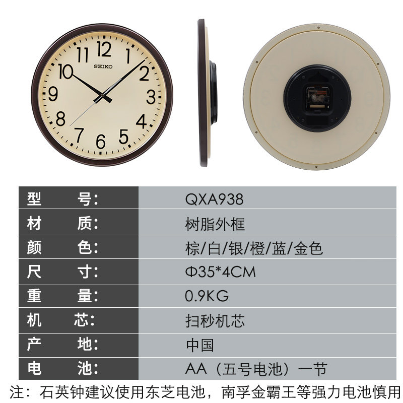 New SEIKO Japan Seiko 14-inch mute hanging wall clock simplified living room clocks modern home hanging clocks-Taobao