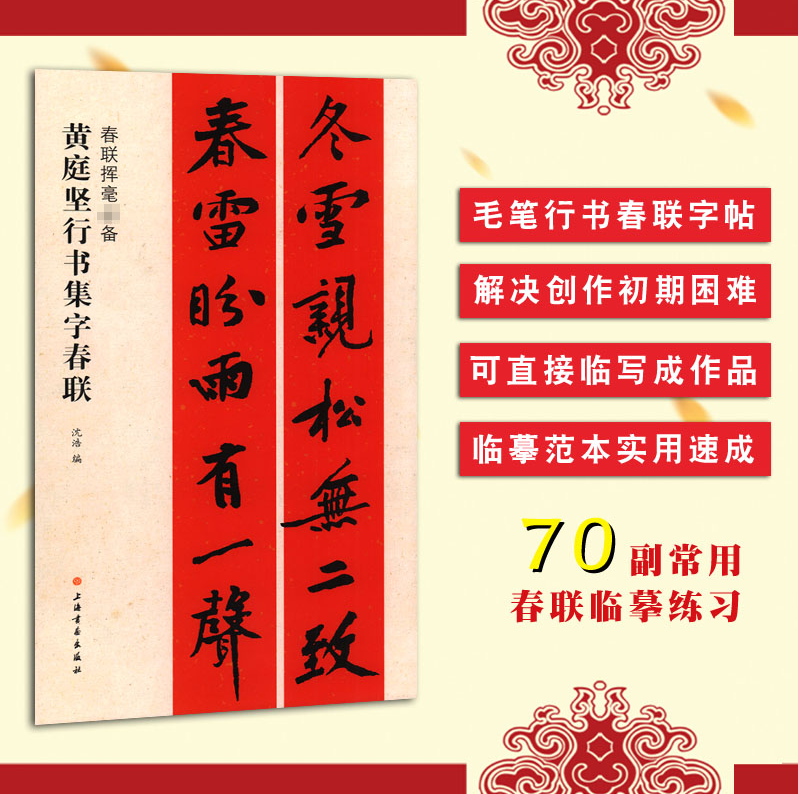 Huang Tingjian's collection of characters in running script, Spring Festival couplets, seven horizontal batches of seventy couplets, running script brush copying tutorial