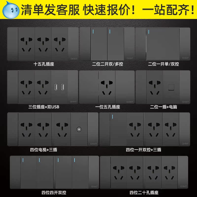 One open single control switch (width 72mm) One open double cut switch (width 72mm) One open multi-control switch (width 72mm) One open single control switch (width 36mm) One open double cut switch