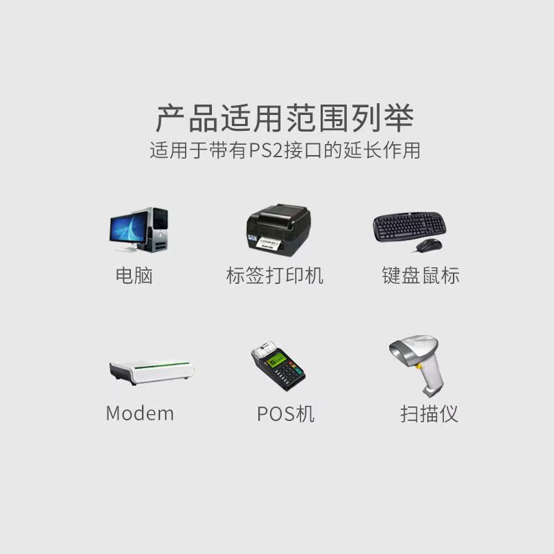 PS 2 extended line sliding mouse keyboard lengthened wire pure copper round head line 6-pin MD6 core lengthened wire PS2 male to bar