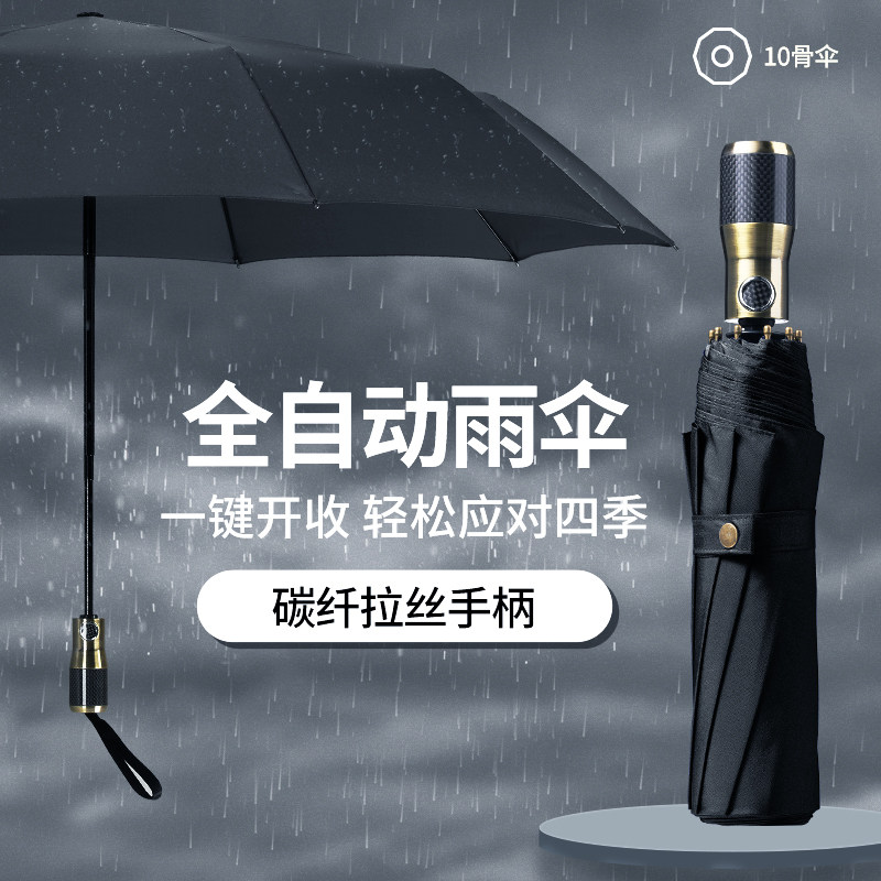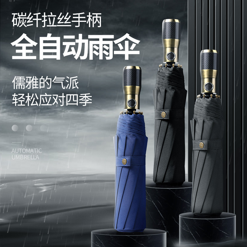 MRS high-end automatic umbrella men's large reinforced and strong wind-resistant, sunny-rain dual-use men's folding umbrella gift