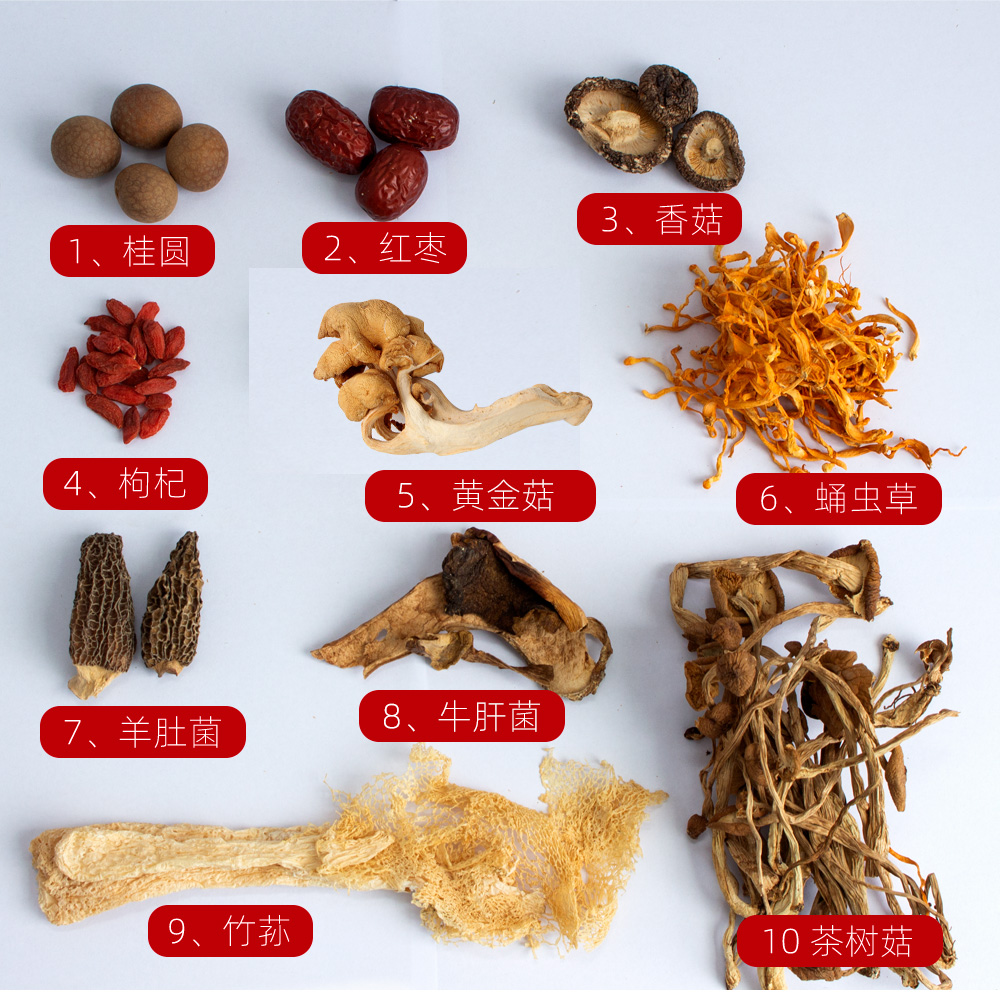 Shiitake Mushroom Bamboo Fungus Tea Tree Mushroom Golden Mushroom Morel Mushroom Boletus Cordyceps Militaris Longan Goji Berry Red Dates
