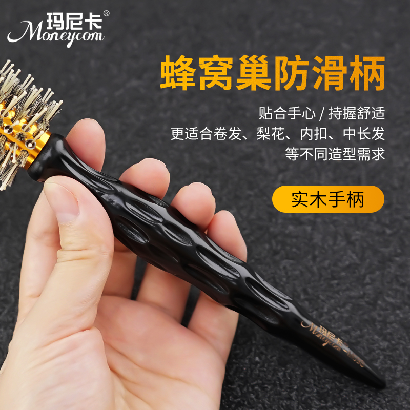 Blown hair curly hair styling comb care bristle hair straight hair hair rolling comb wooden handle roller comb inner buckle ceramic roller comb