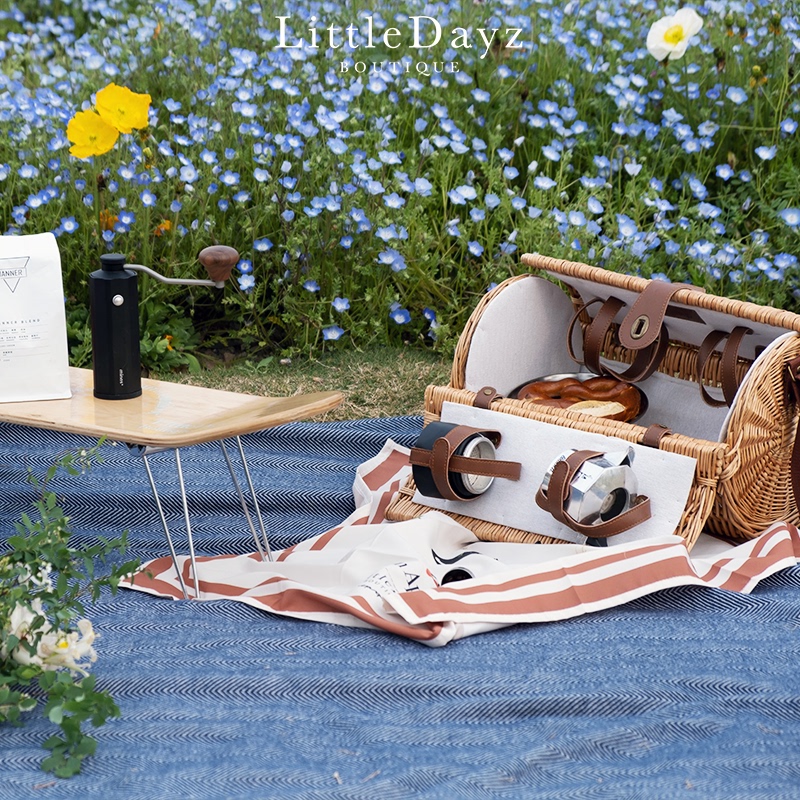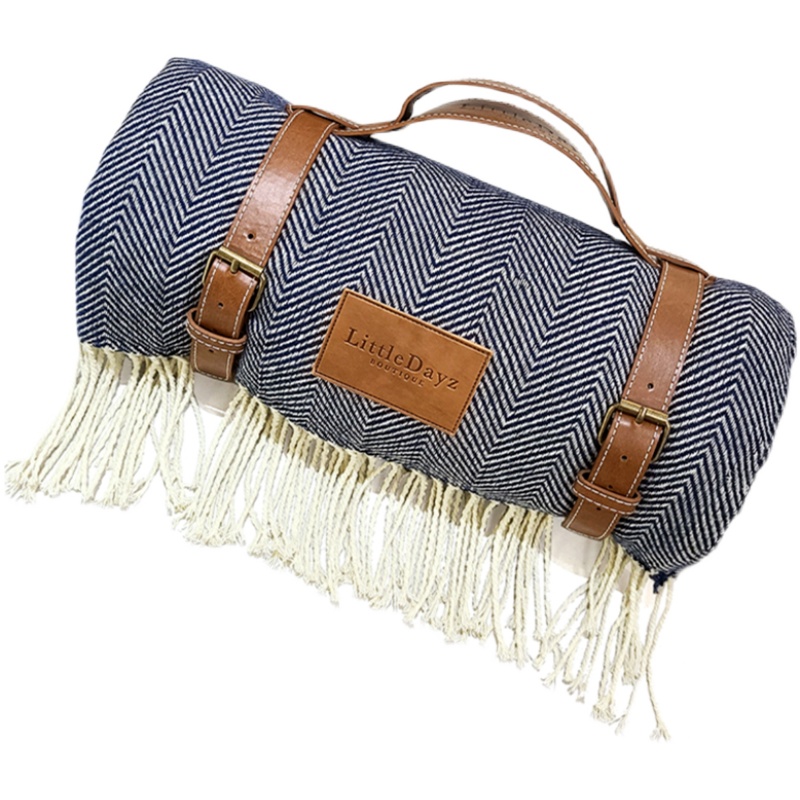 LittleDayz Retro Outdoor Picnic Mat Anti-Tide Cushion Ground Mat Denim Blue Retro Herringbone Textured Wool Blend