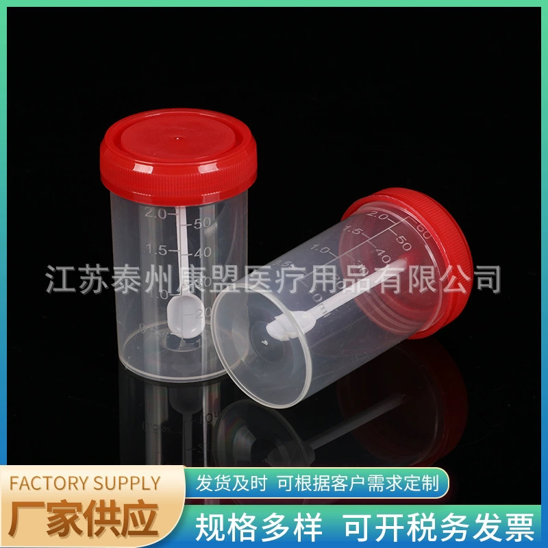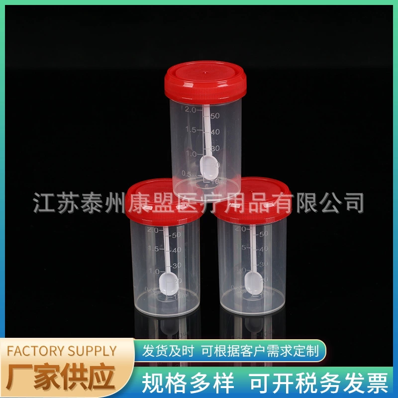 Screw mouth stool cup 60ML with scale supply disposable plastic material with lid screw mouth sampling cup
