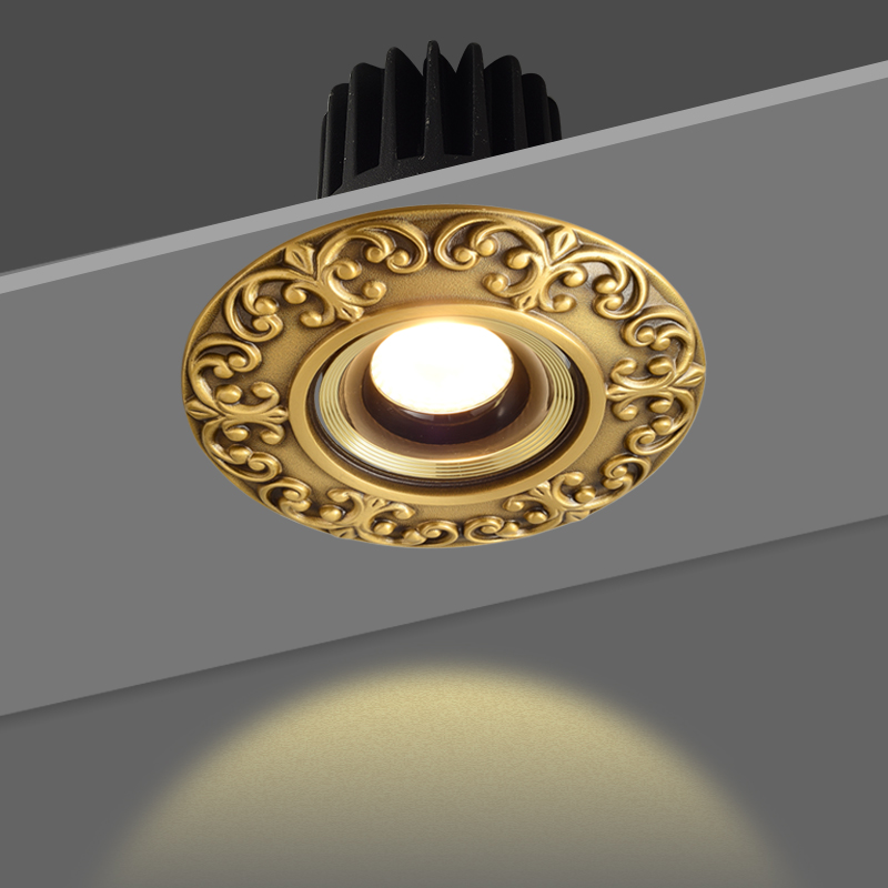 Total Copper LED Spotlight Recessed Ceiling Light Living Room Cylinder Light Anti-glare Tricolour Eurostyle Creative Home American 7 5