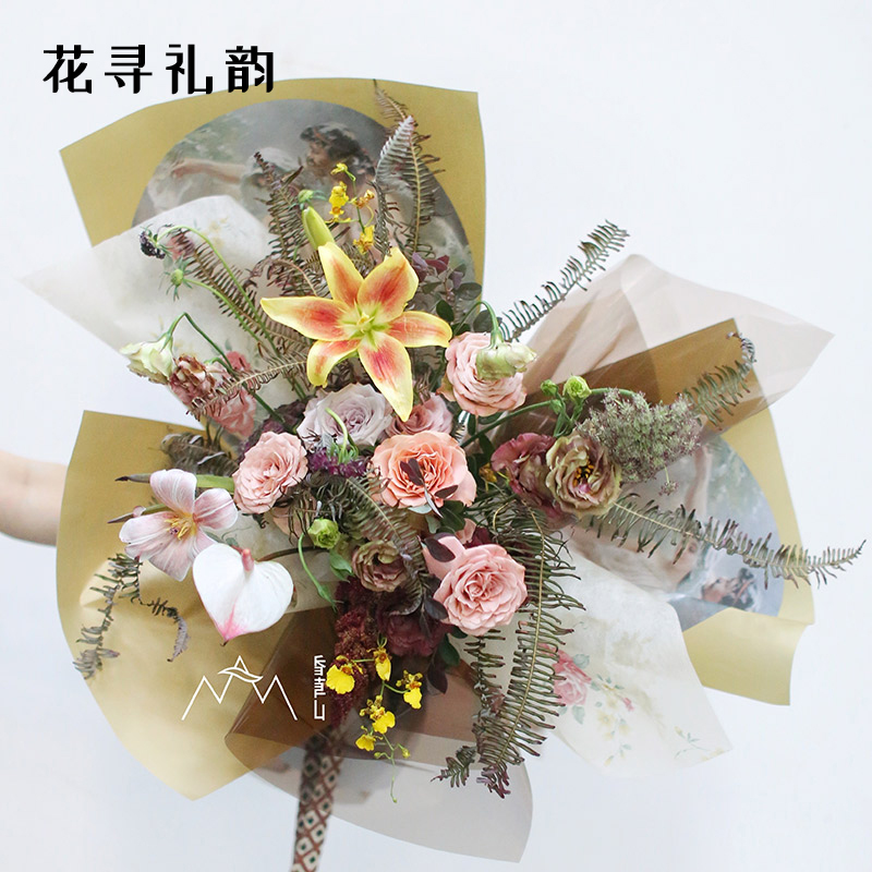 Flower search ceremony rhyme vanilla mountain joint style landscape kapok paper flower wrapping paper retro bouquet paper gift bag flower