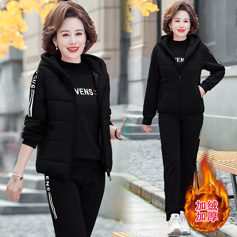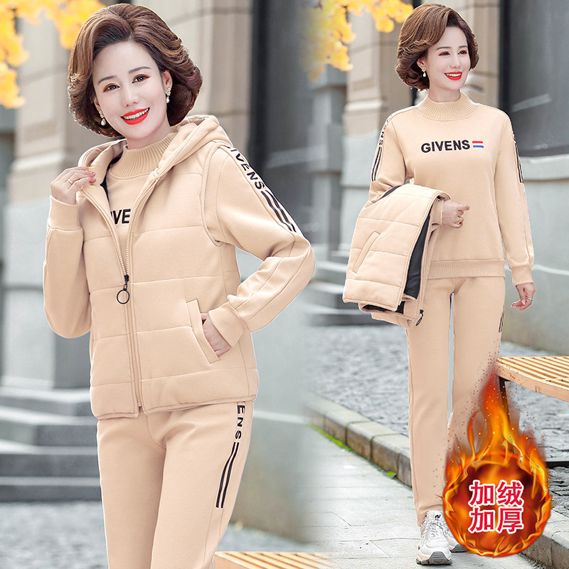 Middle aged sportswear suit Mom gushed and thickened with three sets of 2022 new middle-aged lagoon women's autumn and winter coats