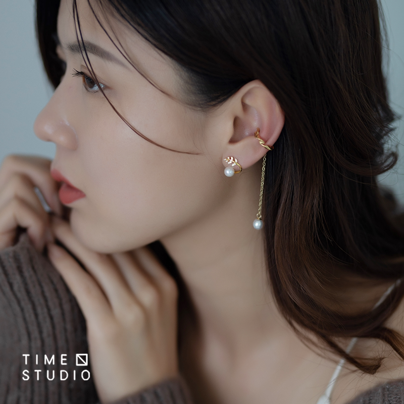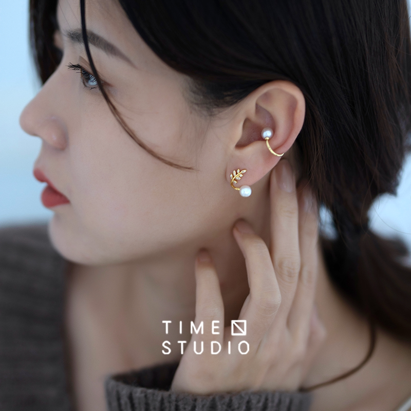Positive round natural pearl ear nail pair of positive round natural pearl ear clip pair