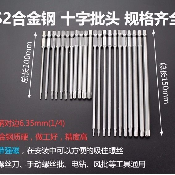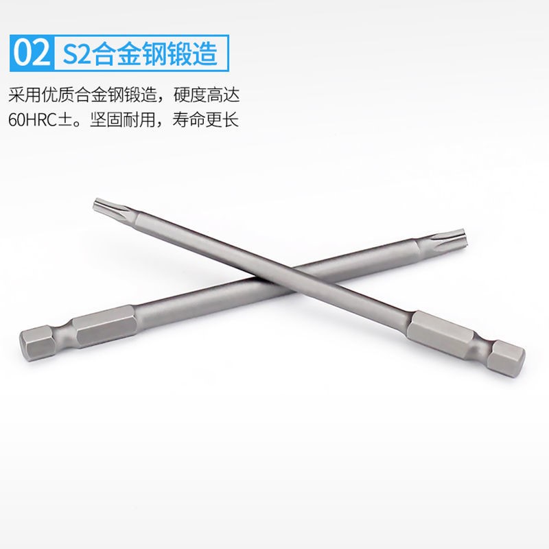 Strong magnetic batch head plum blossom batch head S2 steel band hole with magnetic electric drill electric knife screwdriver head pneumatic pneumatic screwdriver head 50mm