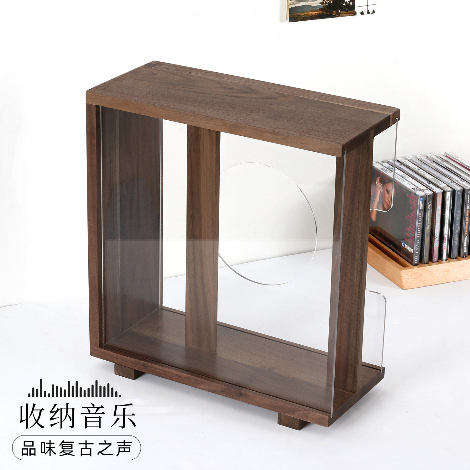 Black walnut vinyl LP record storage rack HIFI old record collection box 12 inch vinyl record rack CD shelf
