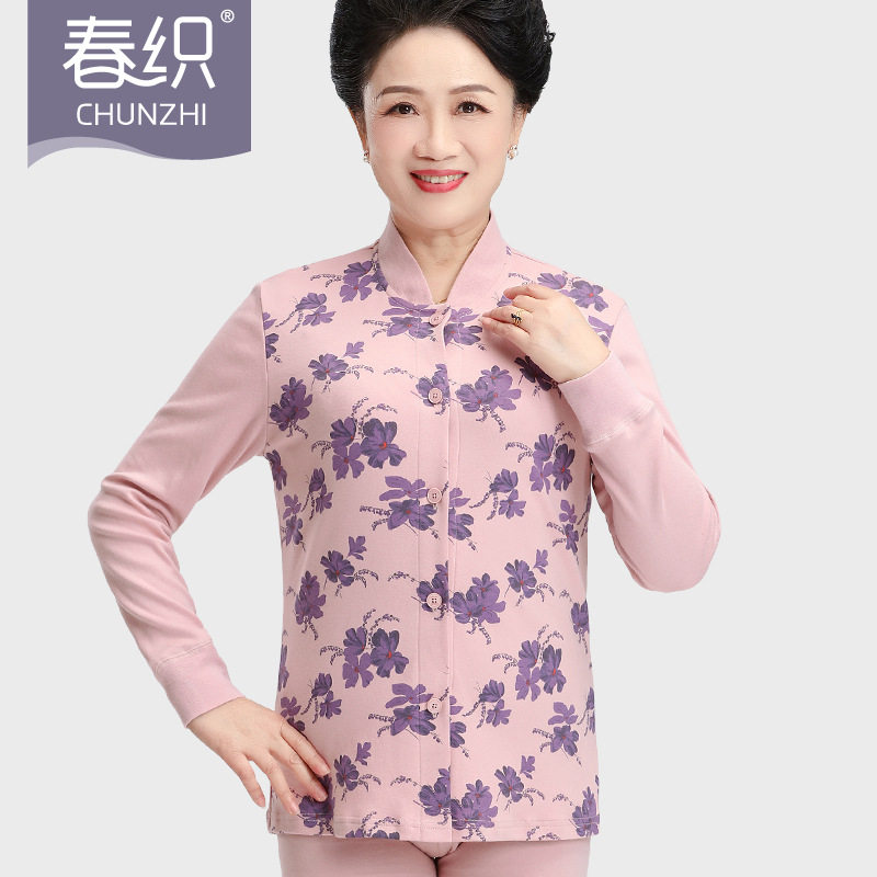 Middle aged woman cardiovert blouse Mom autumn clothes pure cotton jacket Fever Coat Grandma Cardiovert Cotton Sweater Single Piece