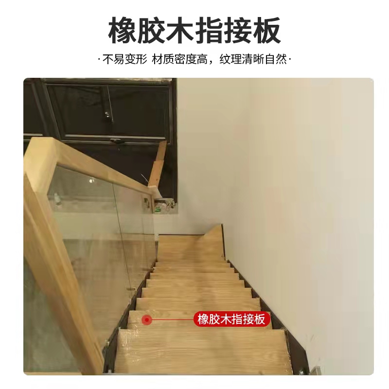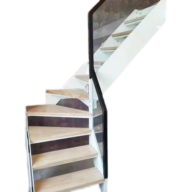 Stair custom double beam household indoor installation wide plate solid wood step steel wood ladder duplex building loft leaping handrail