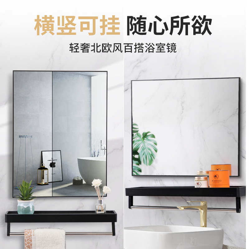 Bathroom Mirror Sticker Wall Self-Stick Toilet Bathroom Hung Wall Free of perforated glass toilet Bathroom Makeup Wall-mounted Mirror-Taobao