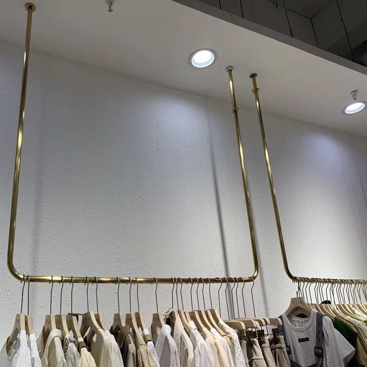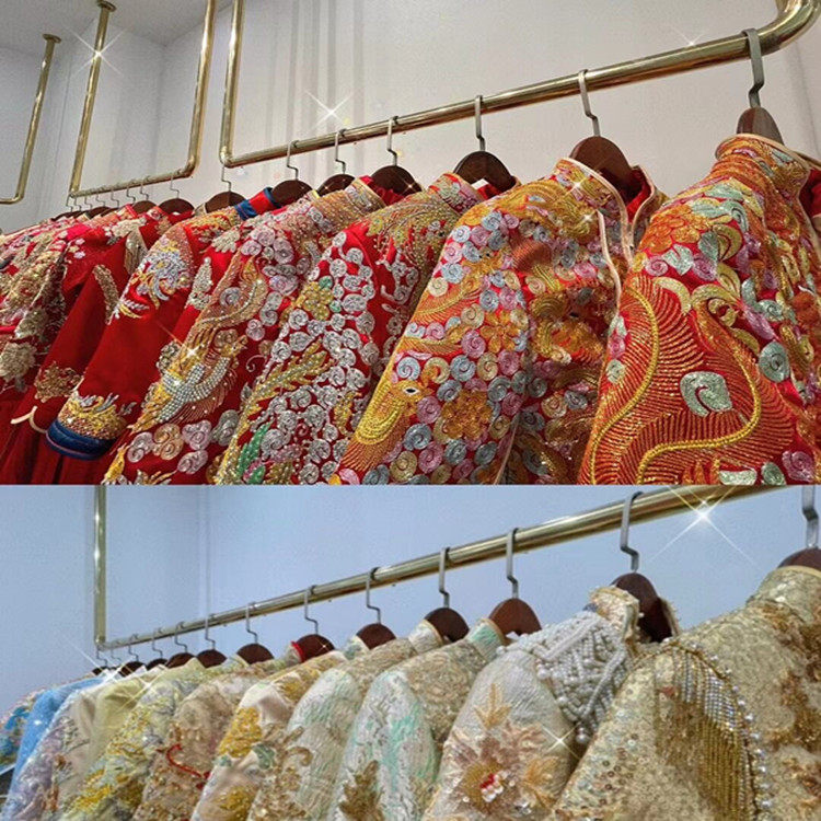 Stainless steel wedding dress display rack clothing store wall hanging titanium alloy brushed suspended ceiling dress hanging hanger custom