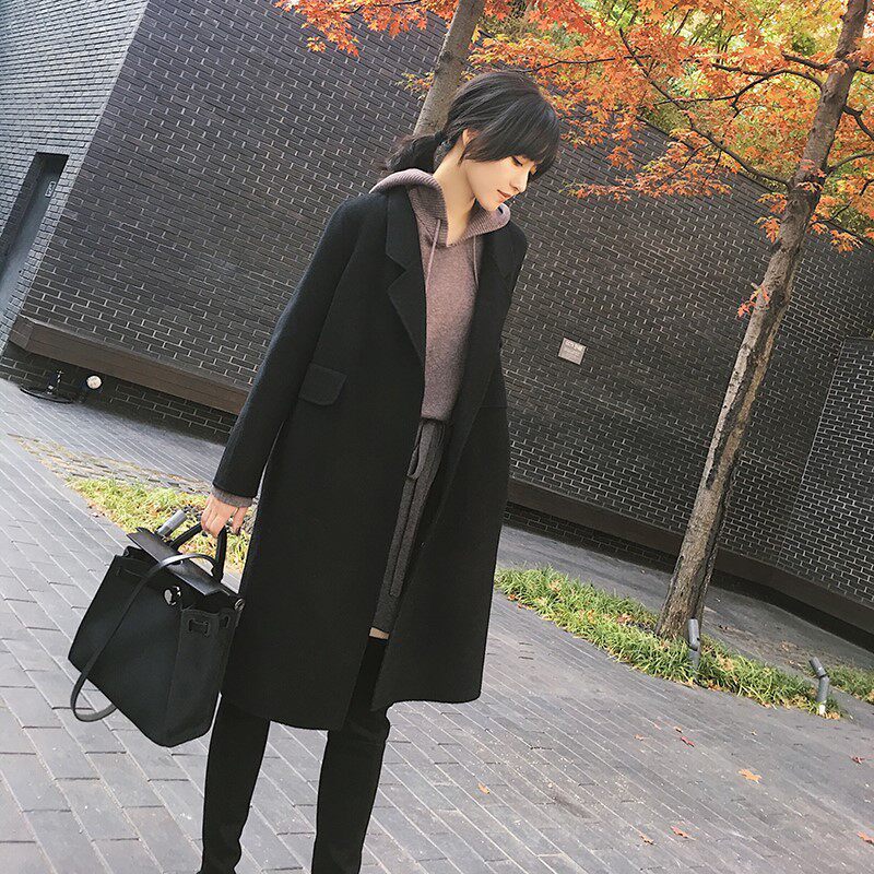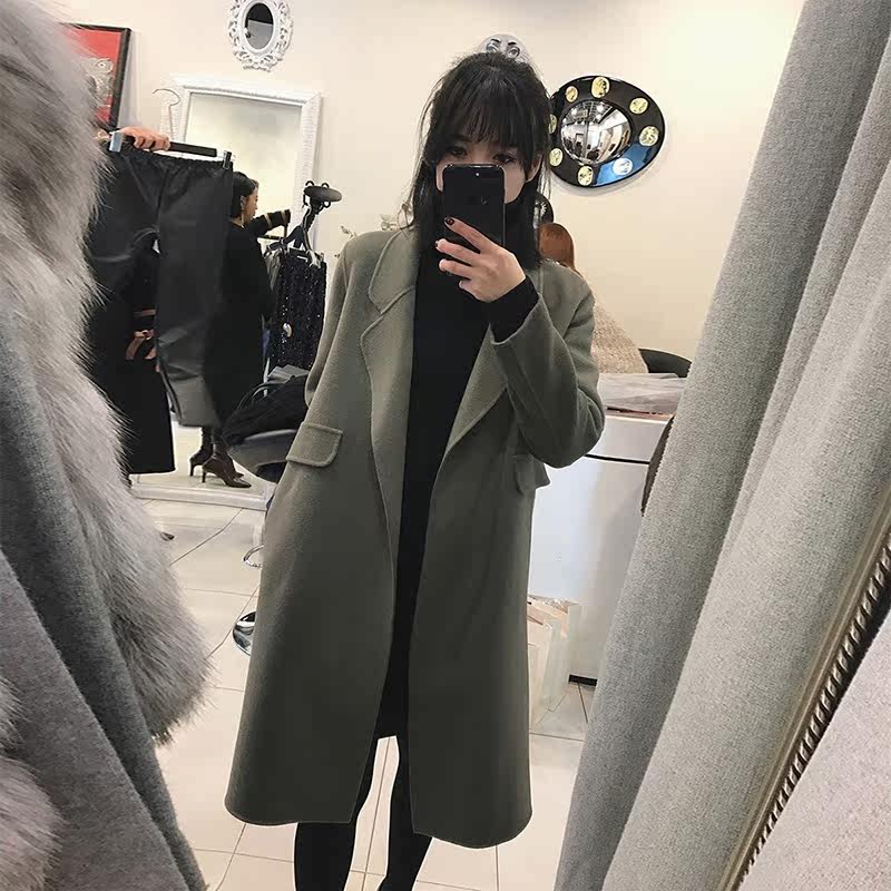 Autumn and winter Korean teas warm outside a double face cashmere Grand coat woman 2021 The new high-end medium long version of the fur coat