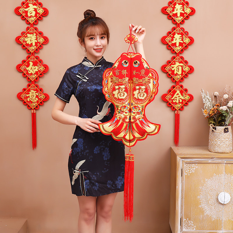 China Knots Fu Characters New Year Fish Pendant New Wedding Room Auspicious Double Fish to Fish Hanging Decoration Placement year-over-year
