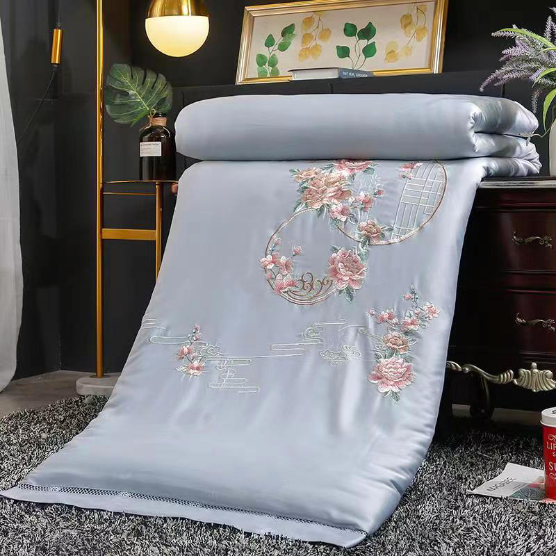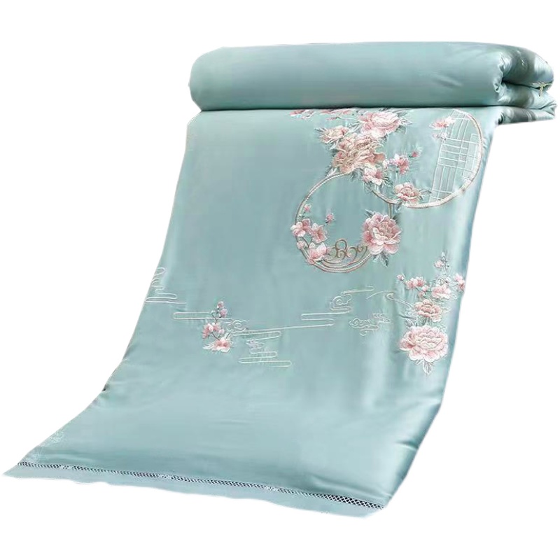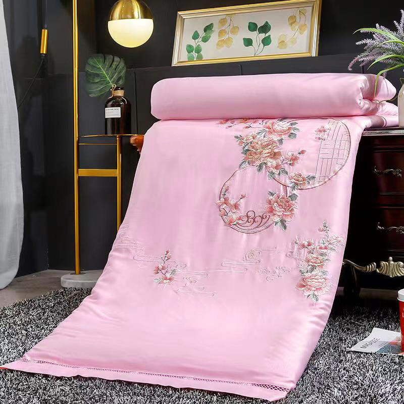 100% mulberry silk t quilt full cotton embroidered peony summer quilt with double spring autumn quilt core quilt cover can be torn and washed in winter by 8 catties