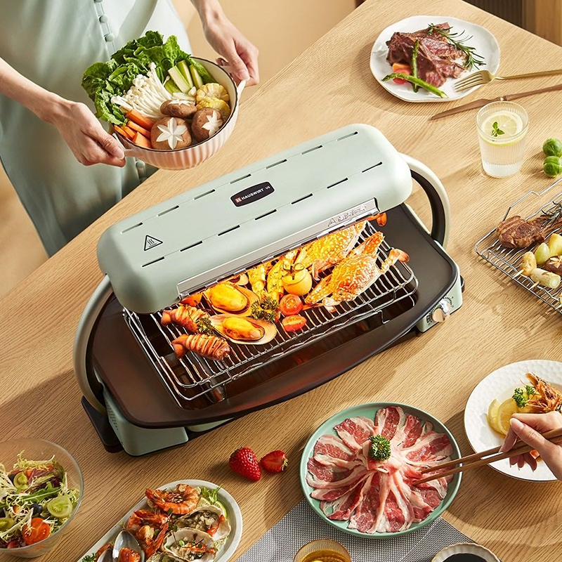 Hai's V6 smokeless fast grill electric grill electric grill electric grill home barbecue grill barbecue grill skewer machine according to barbecue meat plate