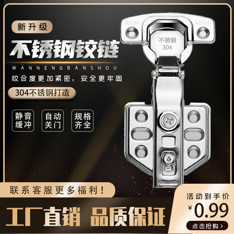 Hinge invisible door hinge turnkey buffer hydraulic damping 304 stainless steel waterproof freezer door closet door hinged fold