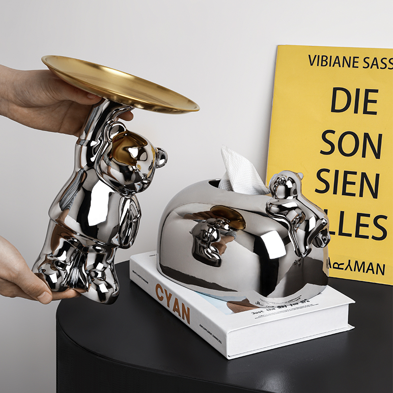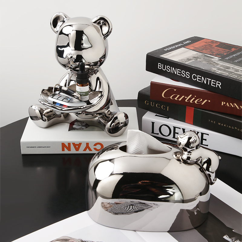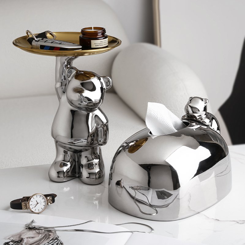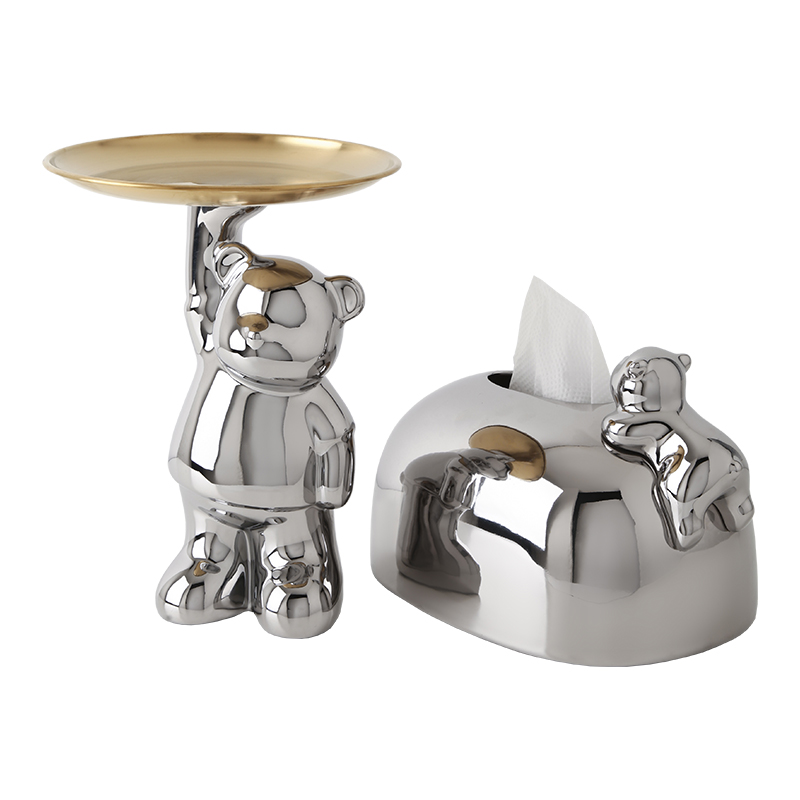 Small bear silver plated key depository for small bear green key depository for small bear pink key depository round Memphis silver plated paper towels case small bear silver plated paper towels box silver-coated paper towel box silver plated small bear