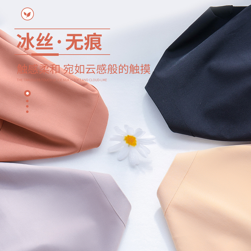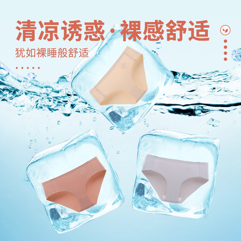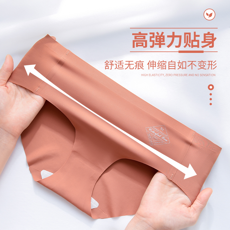 Antibacterial cotton crotch briefs comfortable nude feeling mid-waist not clip hip girls shorts ice silk seamless underwear women's thin section
