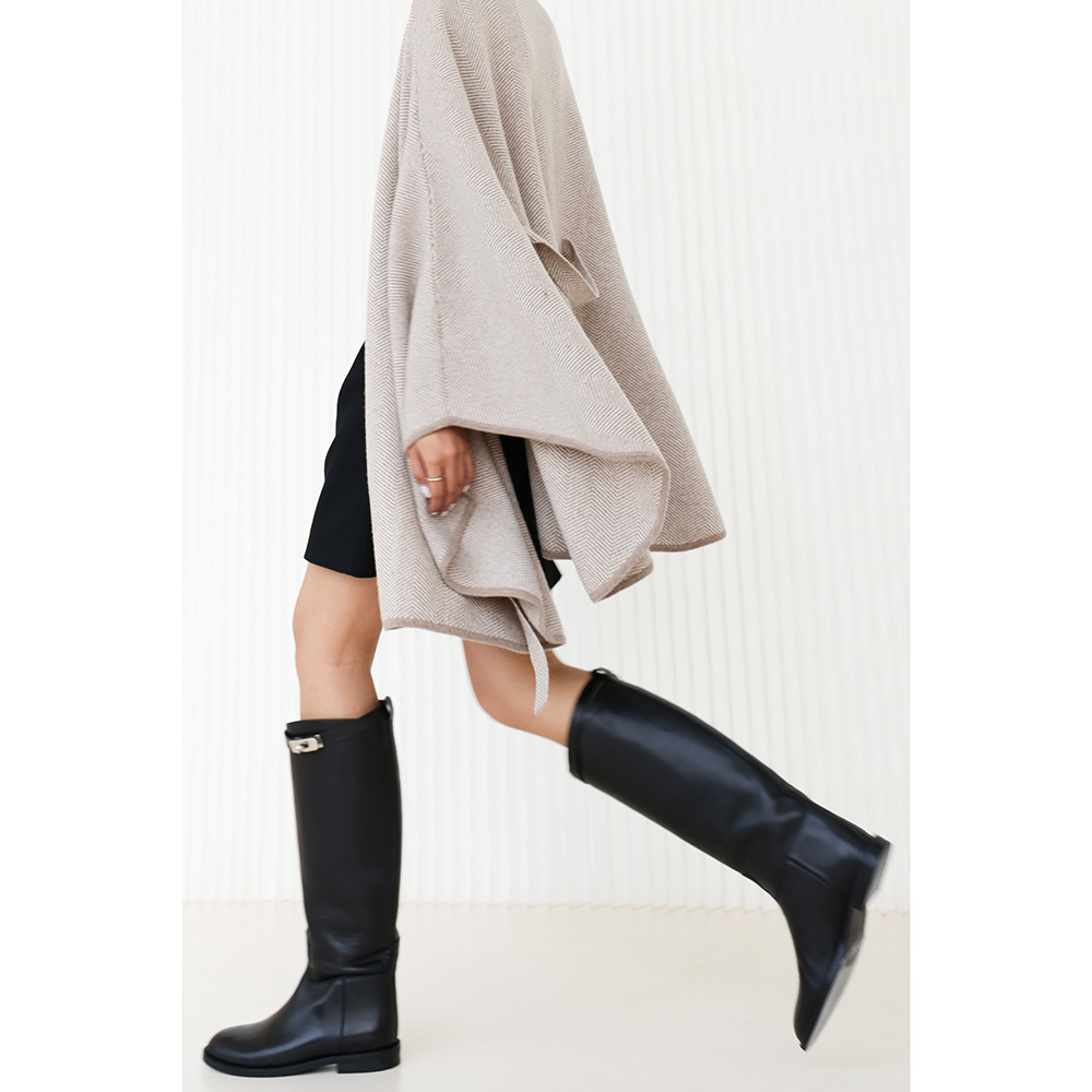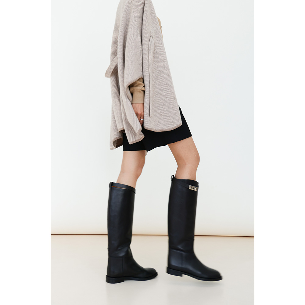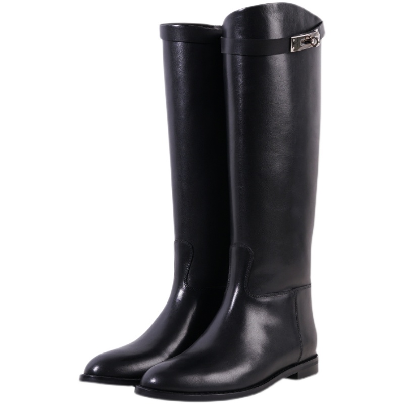 IORE×GS classic all-match first layer tire calfskin flat knight boots knee boots