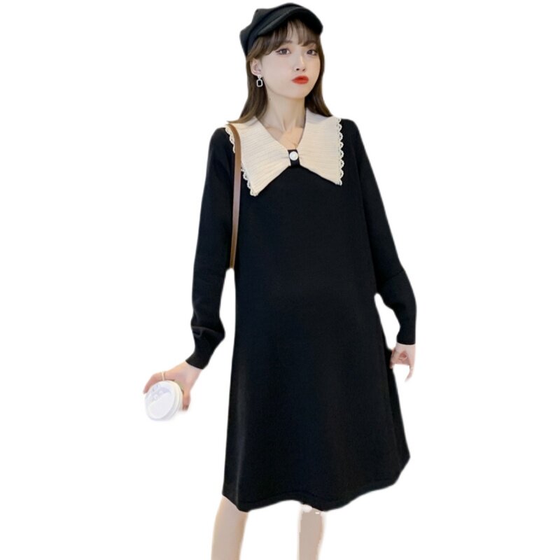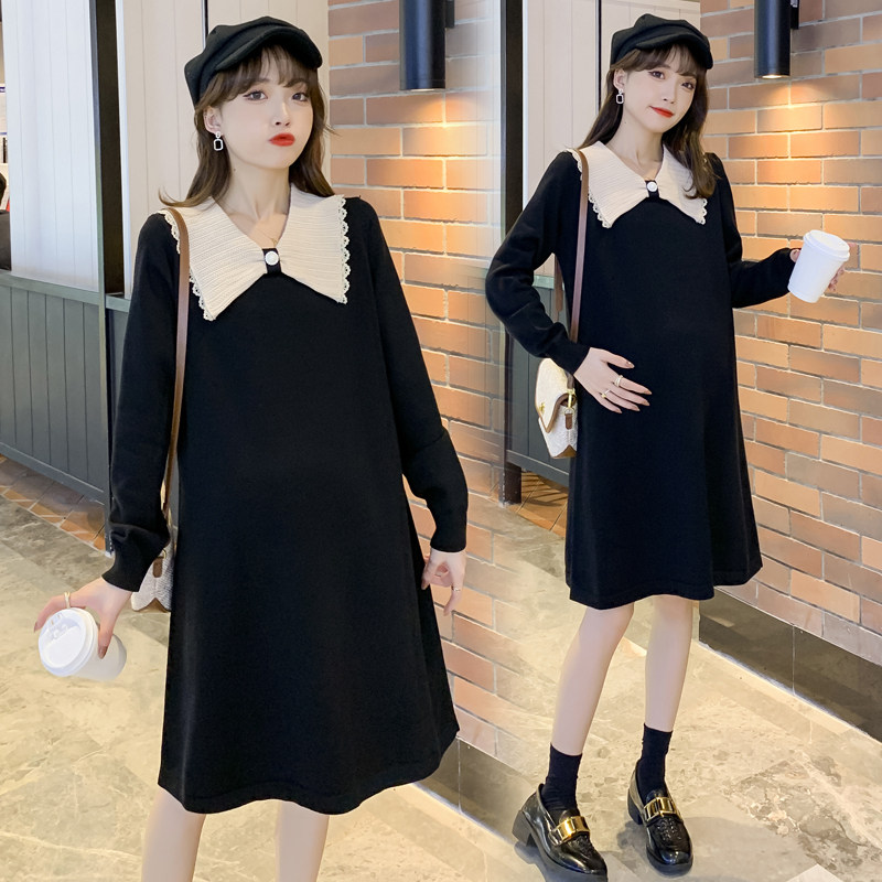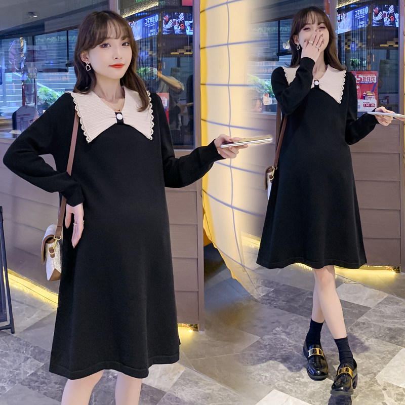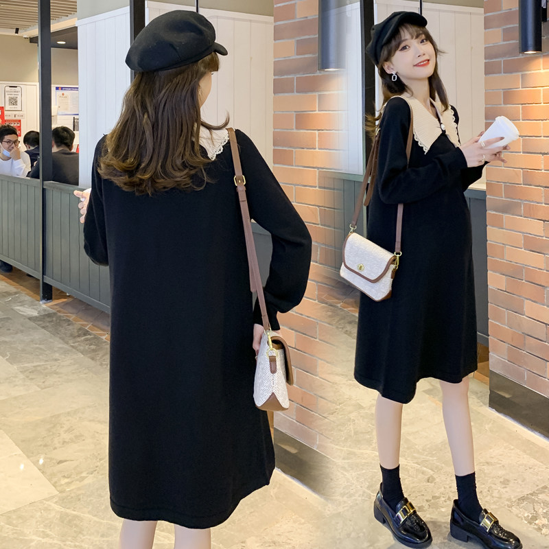 Autumn Winter Dress New Korean Version Large Size Gestation Maternity Dress Loot in Long version of the Ocean Dress Doll Collar Fluffy Dress